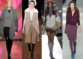 Что же касается цветовой гаммы, то большинство дизайнеров отдали предпочтение сдержанным глубоким (темно-синему, фиолетовому, шоколадному) и спокойным нейтральным (серому, песочному) оттенкам. Сочным вкраплением осенне-зимних коллекций стали яркие кардиганы Versace, Sally Lapointe и Ryan Roche.