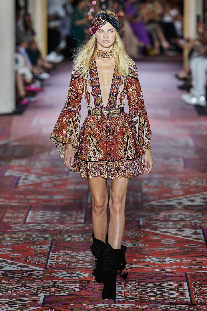 Своеобразным анонсом дефиле Zuhair Murad Haute Сouture осень-зима 2019-2020 стало открывшее показ расшитое декоративными мотивами мини-платье с глубоким вырезом. Над созданием этих причудливых бисерных вышивок трудились мастерицы двух ателье – в Париже и Бейруте!