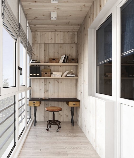 В идеале рабочее место дома должно быть у окна. Но, к сожалению, далеко не всегда есть такая возможность. Как альтернативу в этом случае можно использовать расширенный подоконник, откидной столик (идеальное рабочее место в маленькой квартире!) или перенести домашний офис на балкон.