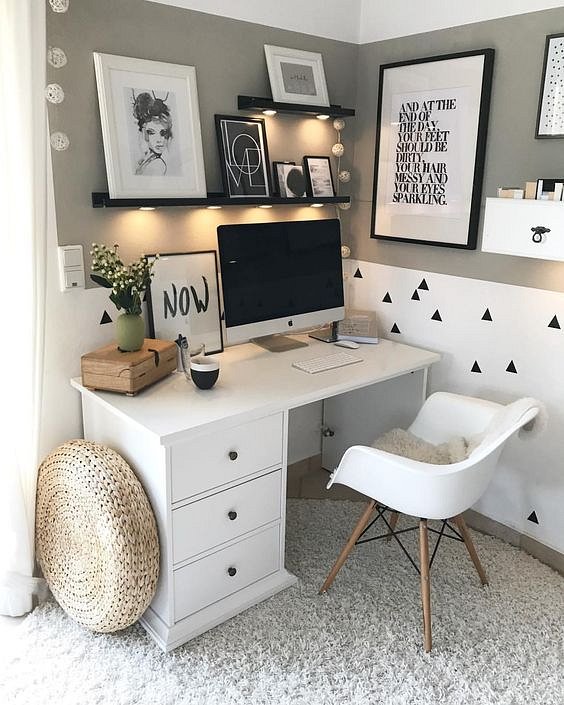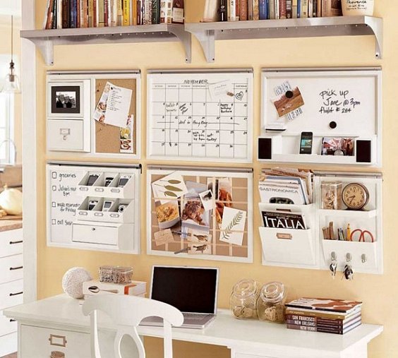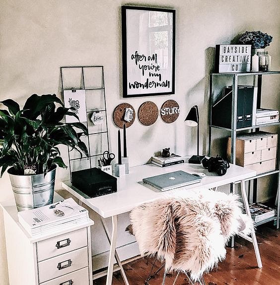 Удобство и организация – это все, конечно, важно. Но не забывайте и об уюте! Как украсить рабочее место своими руками? Очень просто! На стену повесьте фотографии или картины, оформите на свой вкус доску для заметок, поставьте на стол лампу и пару безделиц – внимание они отвлекать не будут, а вот уюта добавят!
