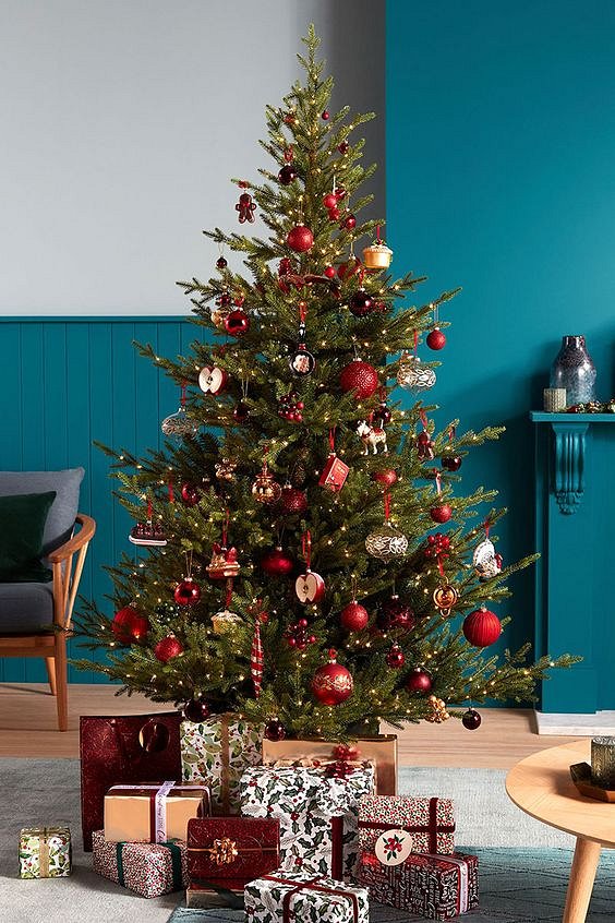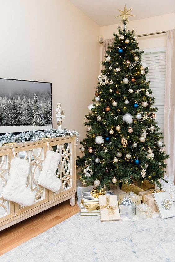 Зеленая красавица – главная героиня новогоднего интерьера. Подбирая новогодние украшения для елки, учитывайте выбранную вами цветовую палитру – декор комнаты и елочные украшения должны сочетаться. Чтобы елочка выглядела стильно, выберите один основной цвет и один дополнительный (например, красный и золотой, синий и серебристый).
