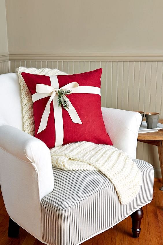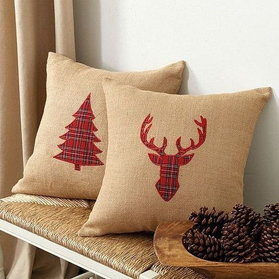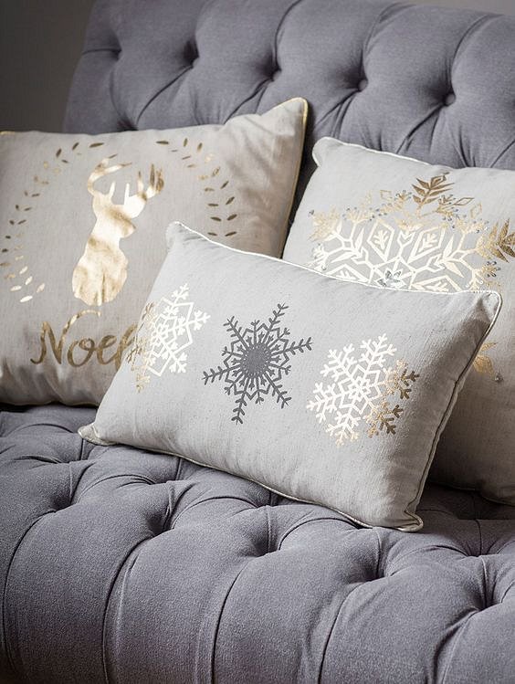 2. Декоративные подушки. Купите новогодние наволочки с тематическими принтами и переоденьте к празднику свои диванные подушки.