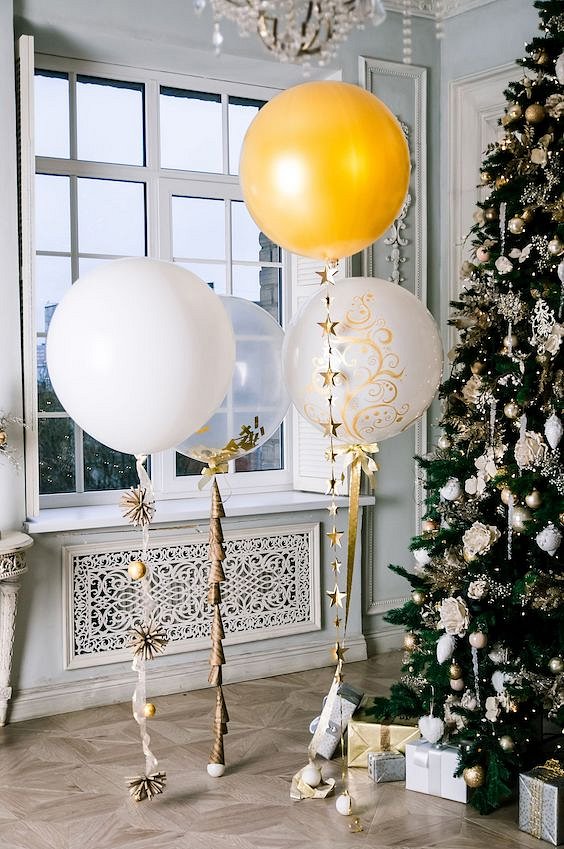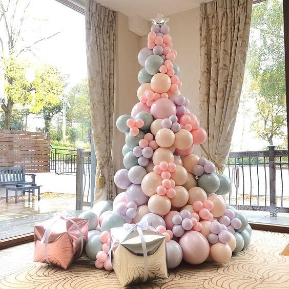 6. Воздушные шары. Шарики можно развесить по комнате, сделать из них арку или колонну, тематическую фигуру или даже «альтернативную» елку.