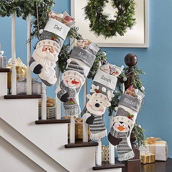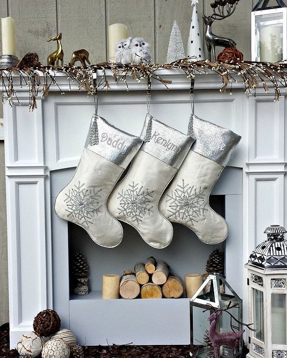 8. Новогодние носки. Если у вас есть камин – лучше места для них не найти. Ну а если нет – повесить их можно, где угодно: на лестнице или на ручках комода, на спинку кровати или просто на стену.