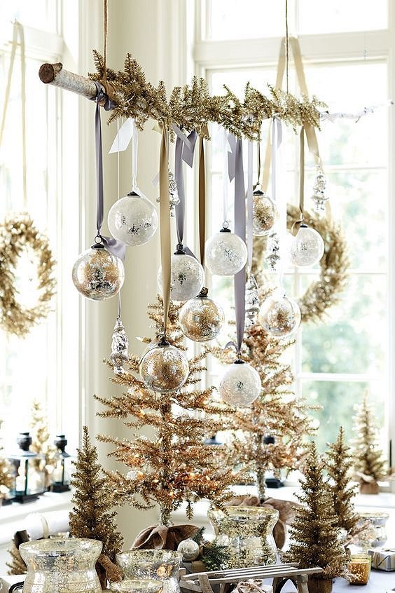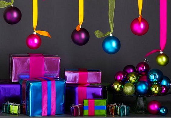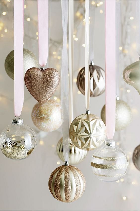 9. Ленты. Подвязанные на атласные ленты шары или игрушки прекрасно будут смотреться в качестве декора люстры или стены. Такими же по цвету лентами можно перевязать и новогодние подарки.