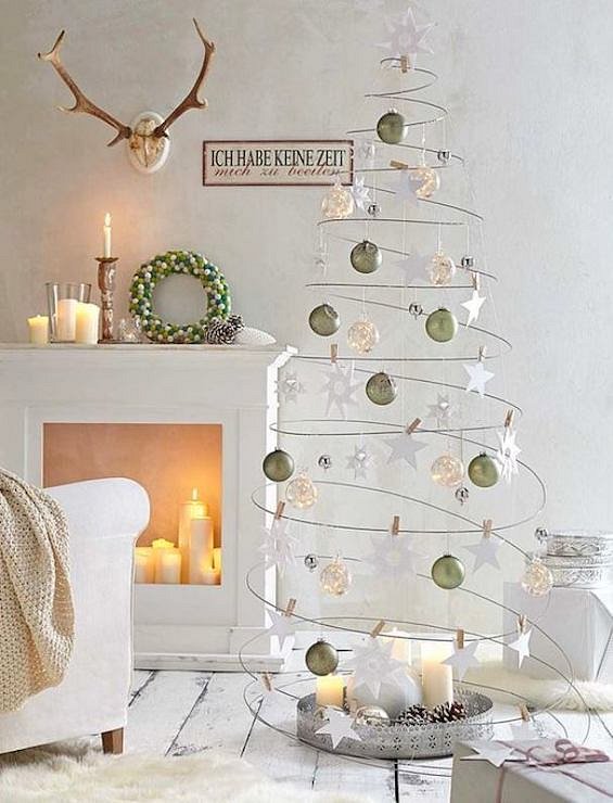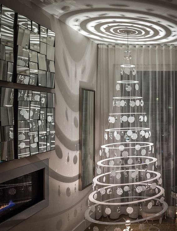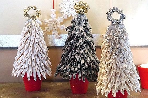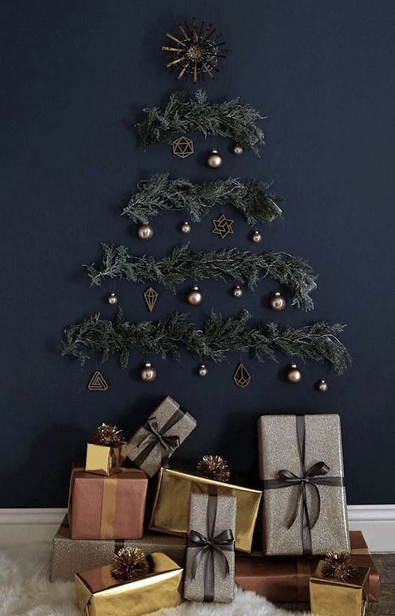 В последнее время очень популярным стали и «альтернативные» елки. Их можно соорудить на стене из дождика, гирлянд, елочных веточек, книг и т. п. Кроме того, можно сделать мини-елочку – из шариков, бумаги, мишуры и даже макаронов!