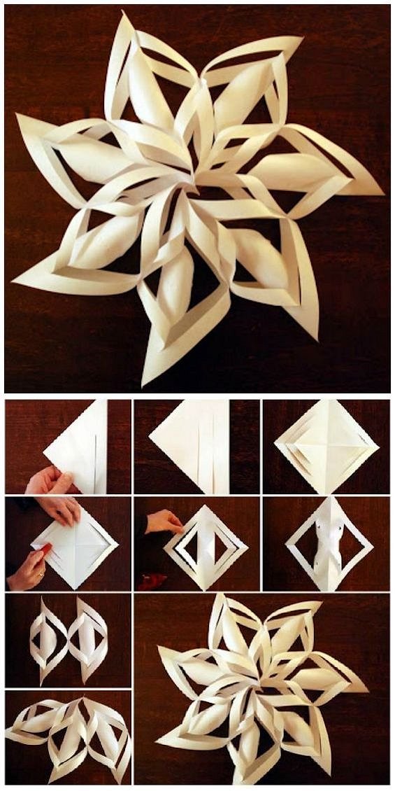 1. Украшения из бумаги на Новый год – это самый простой и доступный вариант. Приобщите к их изготовлению детей – им это обязательно понравится! Можно сделать новогодние гирлянды из разноцветных бумажных колечек, вырезать причудливые снежинки, сделать елочку и т. п.