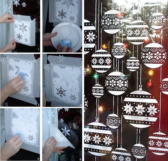 Второй способ использования трафаретов для украшения дома – это нанесение рисунка. Трафарет в этом случае нужно перенести на картон, приложить его к стеклу или зеркалу и губкой нанести слегка разведенную с водой зубную пасту.