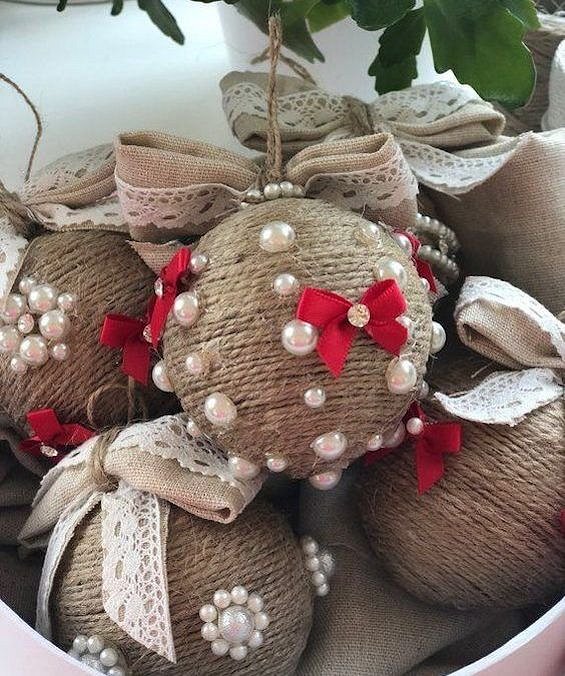 Сделать декор для елки на Новый год можно и своими руками. Легко и просто можно сделать игрушки из еловых шишек, бумаги или фольги, нитяные шарики и фигурки из ткани или мешковины. Можно также украсить елку имбирными пряниками, сухофруктами и вязаными игрушками-амигуруми.