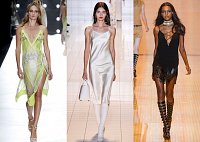 Легкие шелковые платья с кружевами на тонких бретельках - идеальный вариант для коктейльной вечеринки. В этом сезоне самые актуальные цвета комбинаций - черный, белый, бежевый и серебристо-серый.