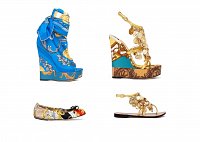 Яркие смелые цвета, необычные принты (цветы, турецкие огурцы, полоски, горошек) и шелковые текстуры (в стиле платков с узорами) стали основой коллекции обуви весна-лето 2012 от D&G.