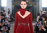 Giambattista Valli выбрал для демонстрации своей коллекции оригинальный формат: на разделенном надвое экране под звуки фортепиано плавно, словно в замедленной съемке, двигались модели, а рядом мелькали кадры Парижа....
