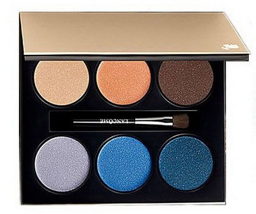 Палетка теней Lancome French Paradise Color Design 6 Pan Palette в цветовой палитре #402 Indigo Intrigue (Limited Edition). Палетка состоит из шести оттенков с матовым и металлическим финишем (три в песочно-коричневой гамме и три в сине-голубой гамме).