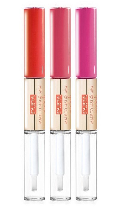 - жидкая водостойкая помада для губ Pupa Coral Island Made To Last Lips Duo. 2-х этапное средство для губ: с одной стороны - насыщенная цветная основа, а с другой прозрачный блеск-покрытие усиливающий цвет и добавляющий стойкости.