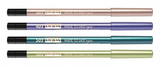 - автоматический водостойкий карандаш для глаз Pupa Coral Island Made To Last Eyes с мягкой, шелковистой текстурой и металлическим финишем. На другом конце карандаша есть точилка для грифеля.
