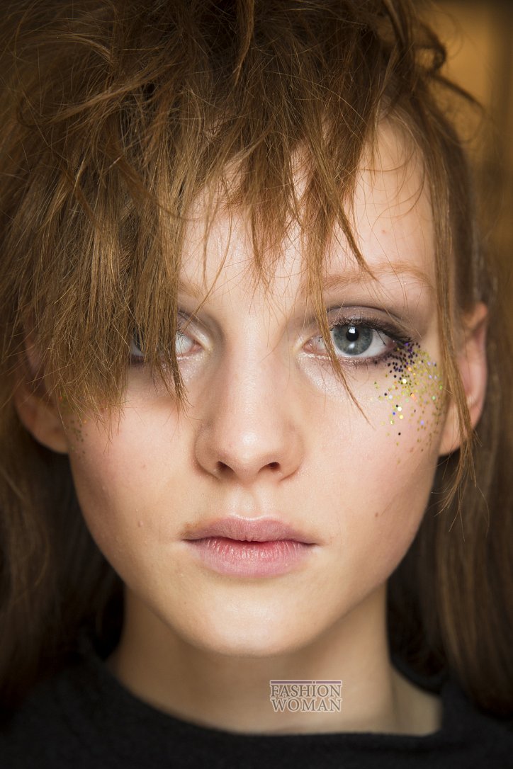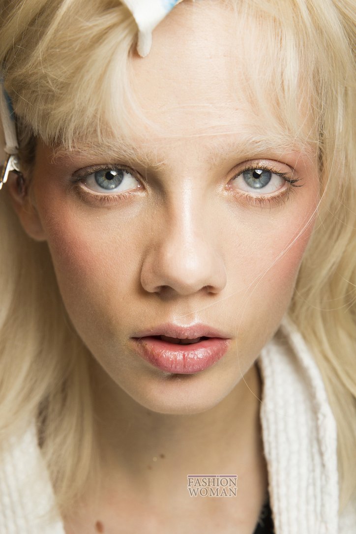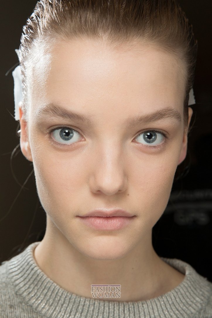 Этой модной тенденции в макияже пальму первенства отдали большинство визажистов. В том числе и мастера make up брендов Ralph Lauren, Giambattista Valli и Rochas. Кажется, в их арсенале нашлось гораздо больше, чем 50 оттенков бежевого: на тщательно увлажненную кожу моделей они накладывали идеальный тон, практически не отличимый от натурального оттенка кожи. С помощью хайлайтеров и сывороток с перламутром лицо приобретало волшебное сияние, которое подчеркивалось чуть заметным деликатным румянцем, удлиняющей тушью и белым внутренним уголком глаза.