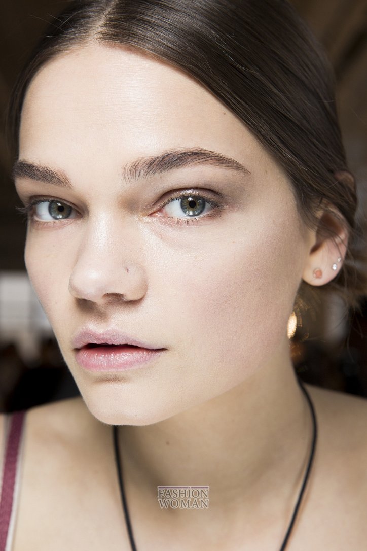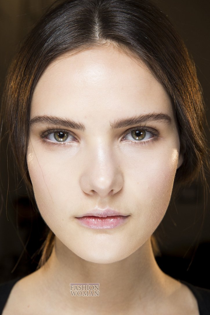 К макияжу в стиле nude идеально подходят только натуральные брови. Так что не усердствуйте, придавая им форму – достаточно лишь слега подправить ее. Как это сделали визажисты Balmain, Roberto Cavalli и Boss.