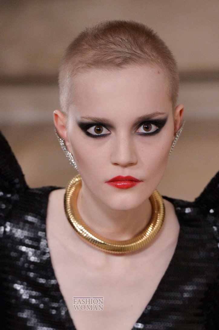 Губы или глаза? Как известно, акцент должен быть только один. Если вы выбираете глаза, то вооружайтесь мягким карандашом и - вперед, практиковаться! Smoky eyes, стрелки а ля Клеопатра и в стиле арт - примеры модного макияжа - на фото Versace, Oscar de la Renta, Saint Laurent.