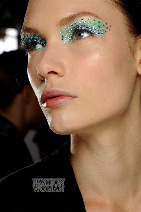 Самые смелые модницы могут попробовать яркий и эффектный макияж с кристаллами Swarovski, такой как можно было увидеть у моделей на показе Christian Dior.