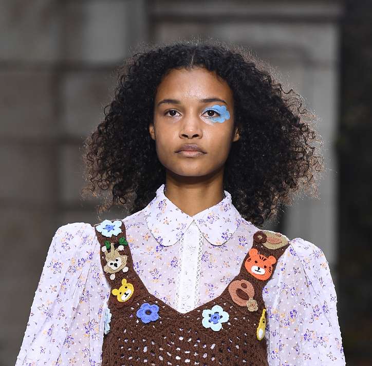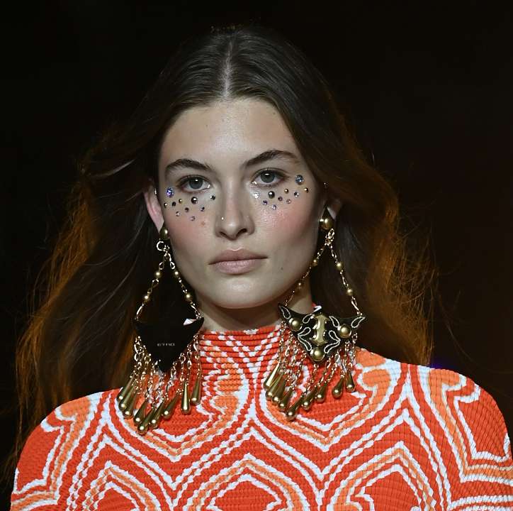 Ещё более необычным был мейкап Thom Browne, Etro и Simone Rocha. Вряд ли кто-то обратит внимание на цвет помады или румян, если на лице моделей красуются «принты» и рассыпаны стразы, цветной глиттер и блестки.