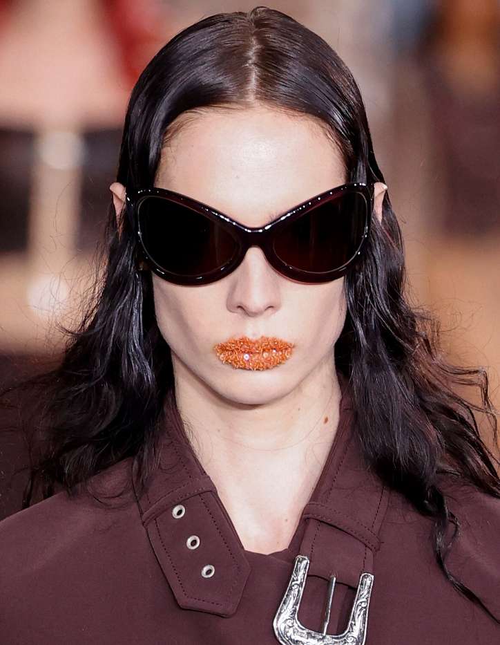 Несколько неожиданным стало попадание в топ трендов всех оттенков коричневого цвета. Нюдовый и терракотовый, цвет горького шоколада и бронзы были везде: в помадах, блесках и карандашах для губ, тенях и лайнерах! В зависимости от оттенка вы можете повторить и нежный естественный макияж, и добавить к образу гранжевых ноток. Идеи подскажут модели Christian Cowan, Tom Ford и Jonathan Simkhai.