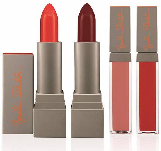 - Помада для губ MAC Brooke Shields Lipstick в двух оттенках: Excite (оранжево-красный) и Gospel (насыщенное бургундское);