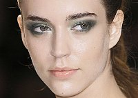 Среди теней для век первенство у фиолетовый (любых оттенков — лаванда, слива, баклажан), синий (причем темно-синий для верхнего века в сочетании с электрически голубым для нижнего) и бронзовый. Последний подойдет не только для глаз, но и для румян и даже для губ. Модно использовать разные тона одного цвета: золотистые веки, слегка бронзовые скулы и медовые губы. Что касается век, то наносить тени в этом сезоне стоит интенсивно и растушевывать в линию к самым вискам — таково требование сезона. Но, к слову, растушевка в стиле smoky eyes по-прежнему актуальна. И напоминаем: в почете также яркая помада и подчеркнутая впалость.