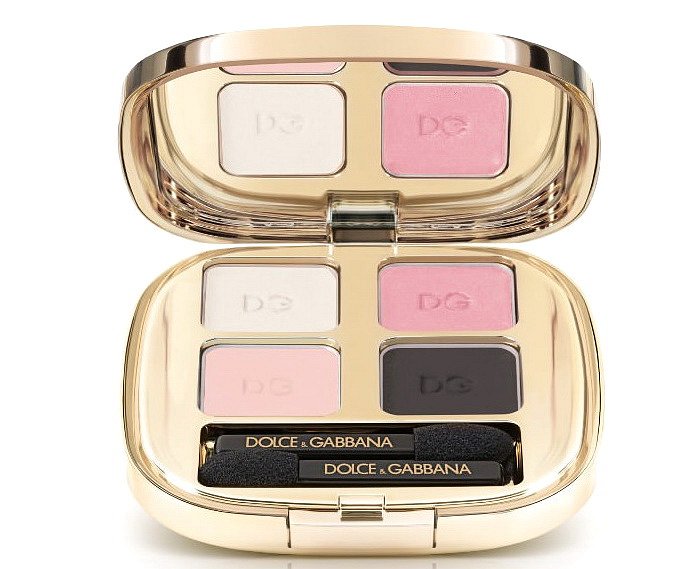 Четверка теней для век Dolce & Gabbana Smooth Eye Colour Quad в цветовой палитре 143 Miss Dolce (белый, нежно-розовый, черный, пастельный розовый).