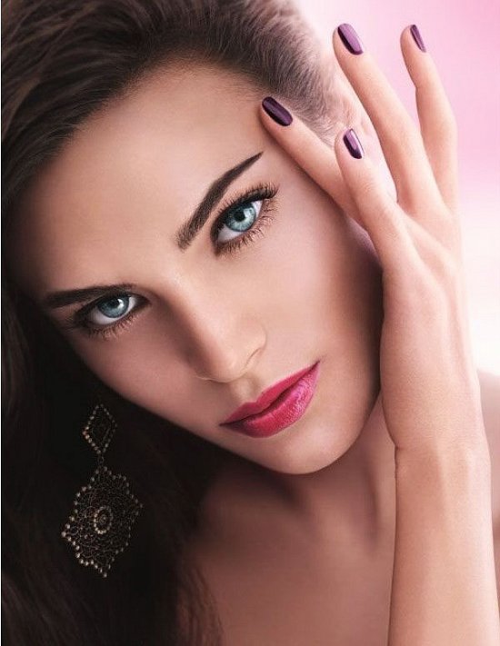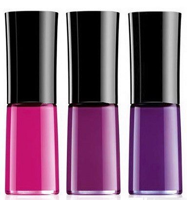В нее вошли средства для губ и лаки для ногтей выдержанные в фиолетовых и ярко розовых оттенках.