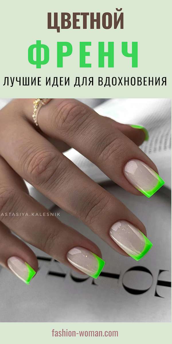 Что касается формы ногтей – самые популярные варианты – это цветной френч миндаль и мягкий квадрат. И, конечно же, всегда будет актуален цветной френч на овальные ногти.