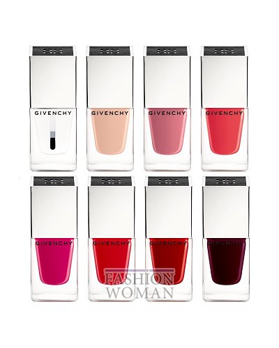 Французский бренд Givenchy порадовал поклонников весенней коллекцией лаков для ногтей Le Vernis. Новая линейка лаков состоит из семи новых оттенков – (бежевый, нежно розовый, коралловый, фуксия, алый, темно-красный и вишневый).