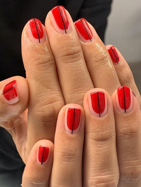 Красным лаком можно сделать как линию улыбки, так и использовать его в качестве основного цвета.