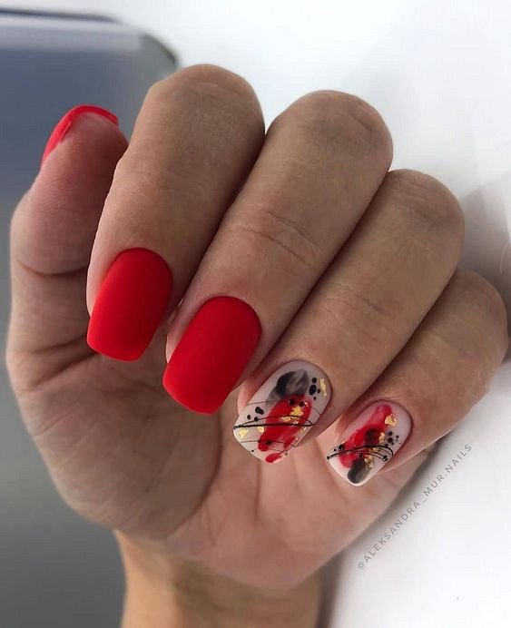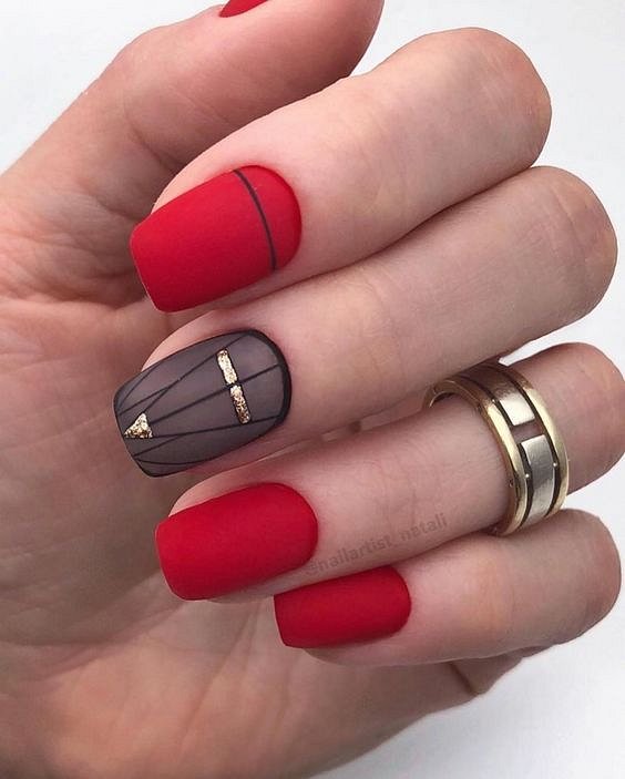 Среди самых популярных вариантов дизайна для маникюра с красными ногтями можно выделить: