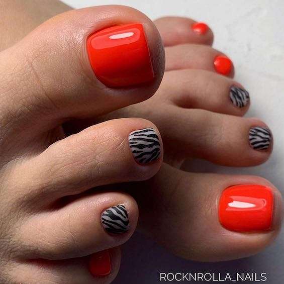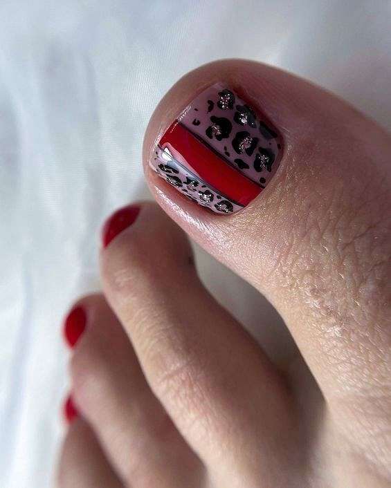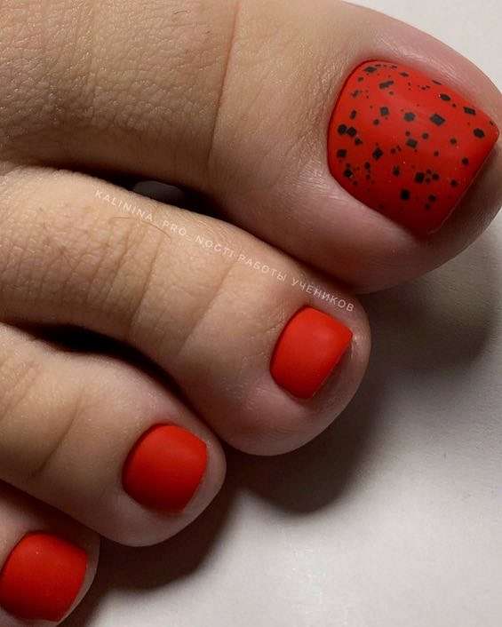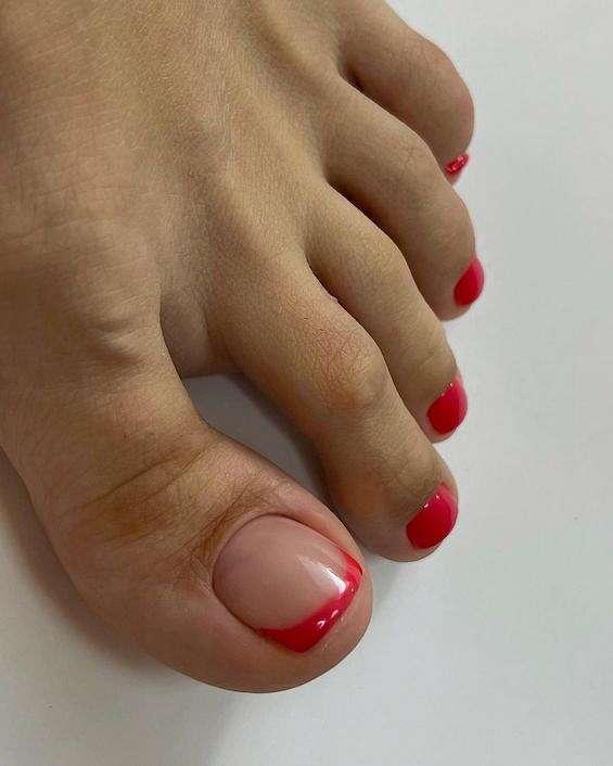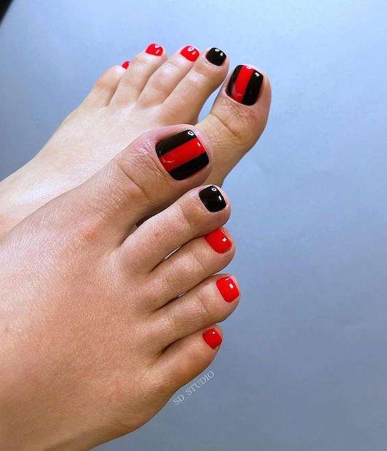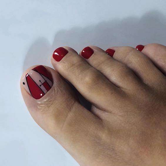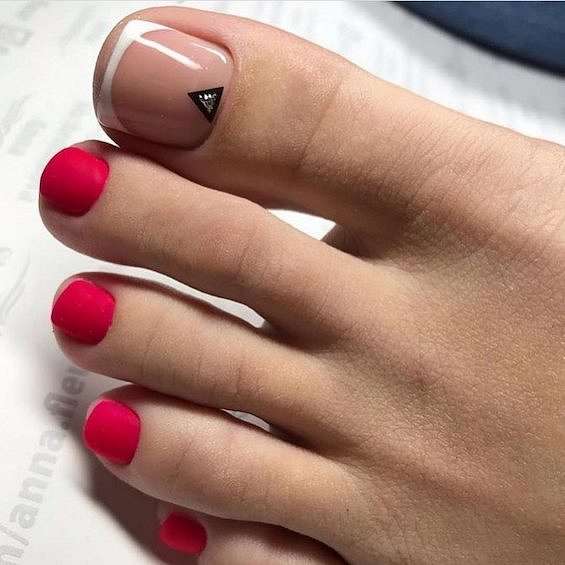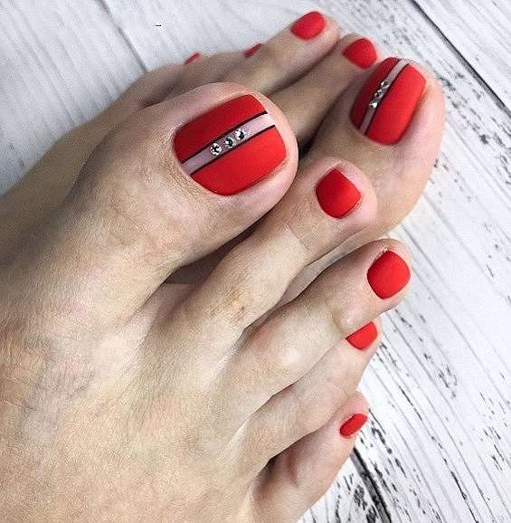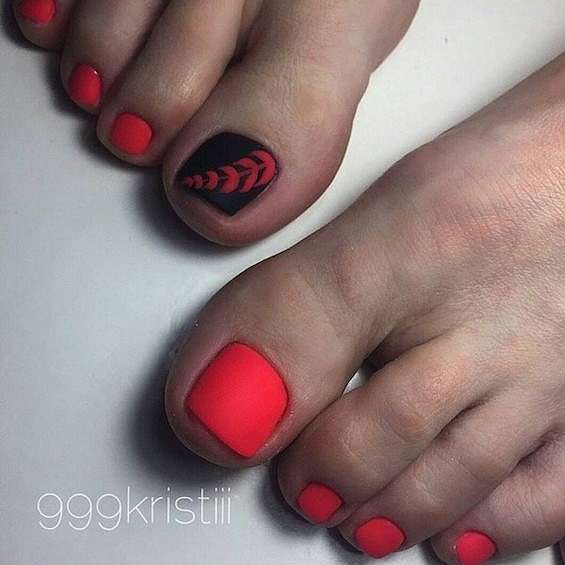 Модный красный педикюр превосходно смотрится не только в моно-версии, но и в сочетании с другими цветами.
