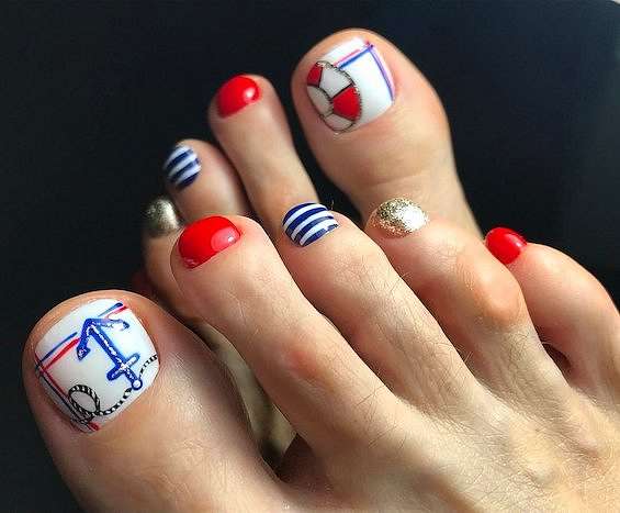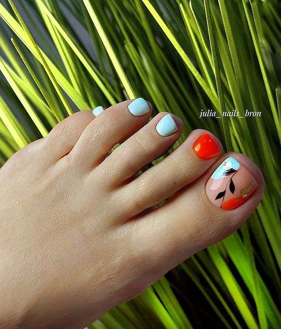 Как правило, в роли «холста» для дизайна выступает ноготь на большом пальце, но под минималистичные рисунки или френч можно задействовать и все ноготки на ноге.