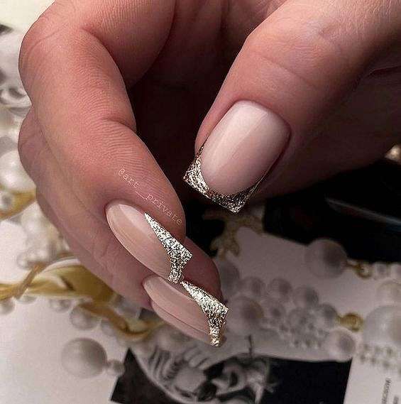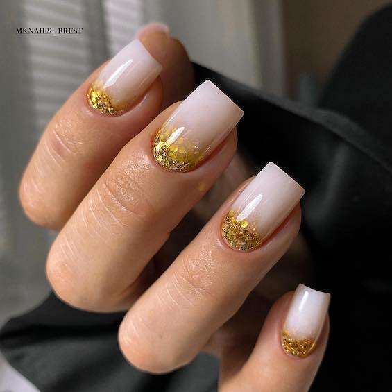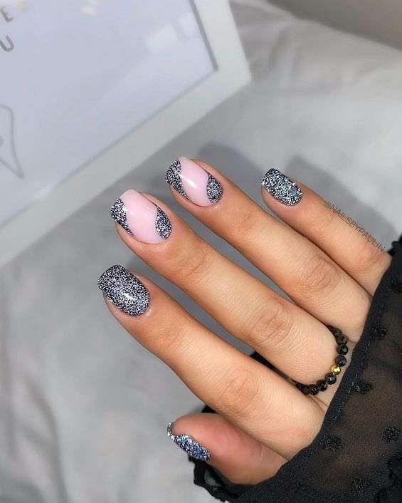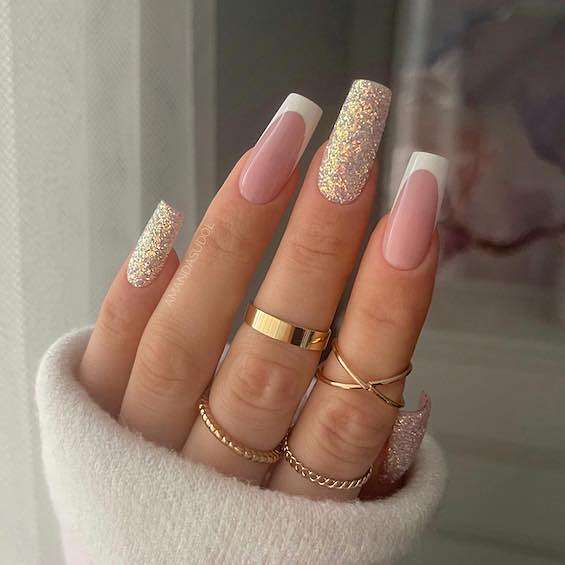 Блестящий френч на квадратные ногти