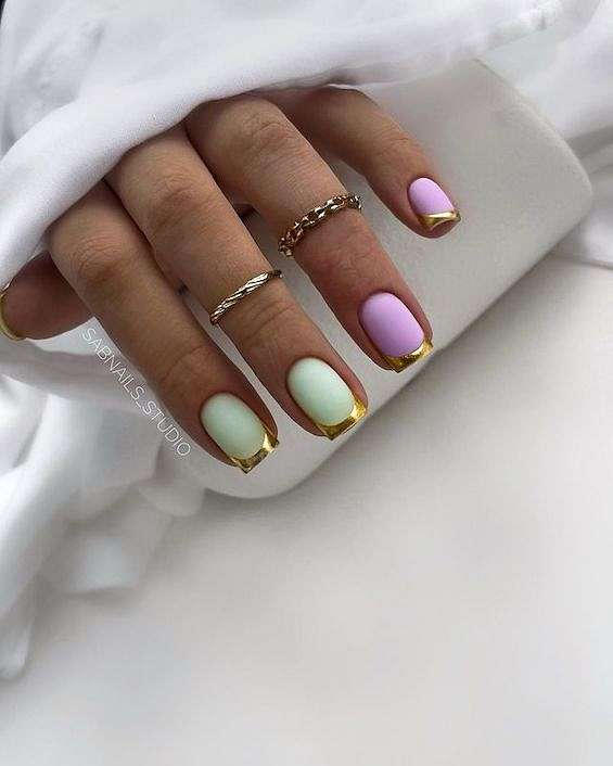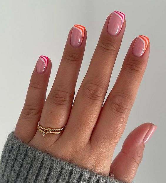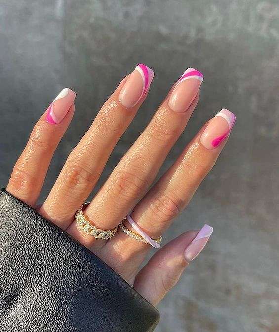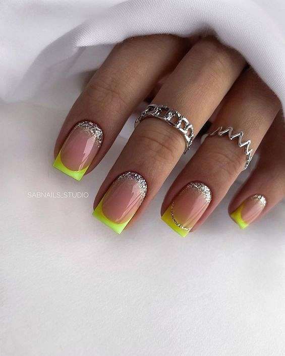 Цветной яркий френч на квадратные ногти