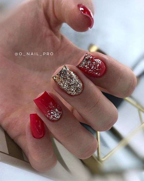 Праздничный маникюр на квадратные ногти