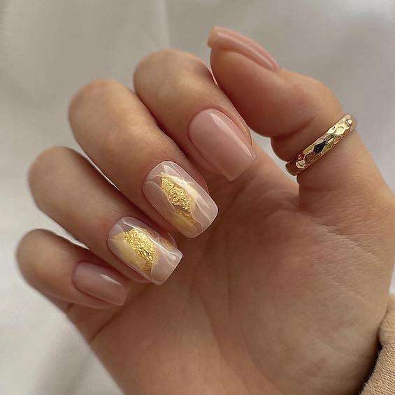 Нюдовый маникюр на квадратные ногти