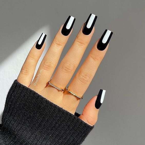 Черный маникюр на квадратные ногти