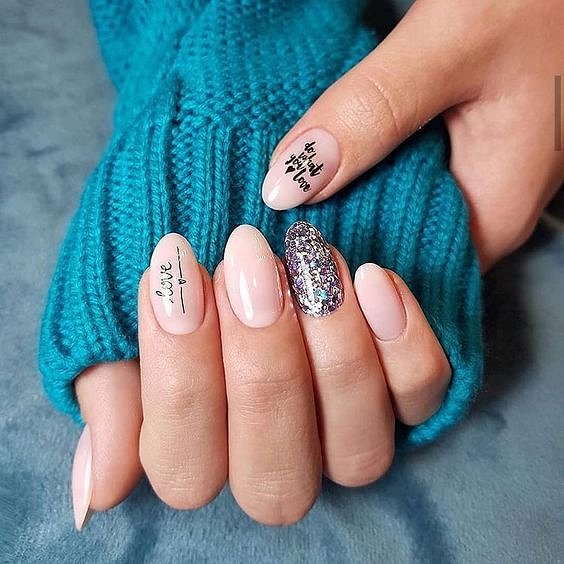 Маникюр с надписью amor
