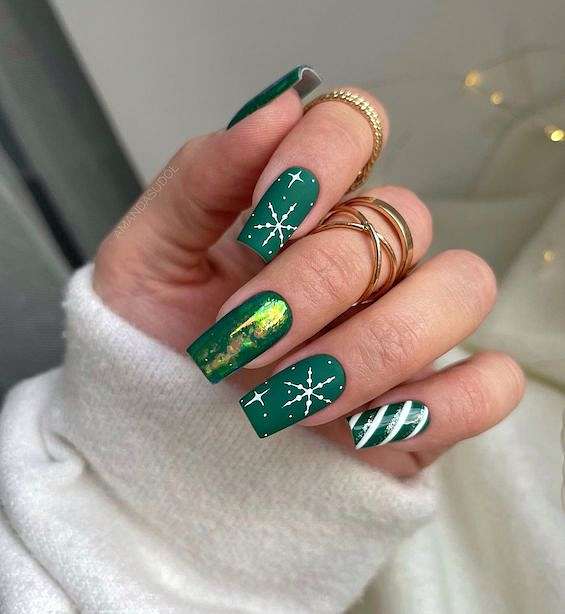 Красивый новогодний маникюр должен не только подходить к вашему образу, но и быть модным и эффектным. И, хорошо бы, если бы удалось угодить и хозяину года. А он в 2024 году деликатный и мягкий, но в тоже время сильный и могущественный, ведь символом следующего года будет Зеленый Деревянный Дракон. Так что зеленый и красный маникюр, а также блестящий, имитирующий чешую дракона, явно будут в фаворе. Ну и, конечно же, не забывайте про стразы и кристаллы!
