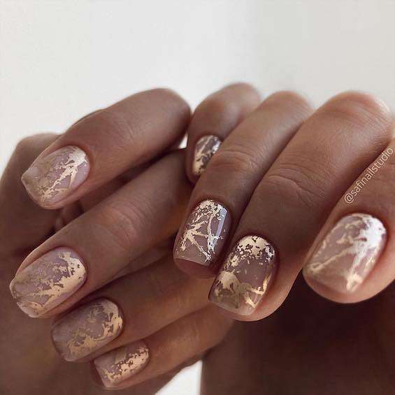 Идеальными вариантам для коротких ногтей будет френч, маникюр с фольгой или стразами, нежный маникюр с рисунком и однотонные покрытия.