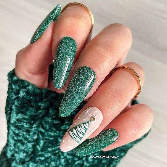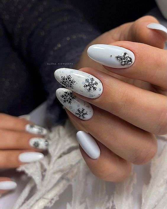 Благоволит Зеленый Деревянный Дракон и к белому и серебристому. Так что новогодний маникюр на год Дракона смело можно выполнить полностью или частично в белых и серебристых оттенках.