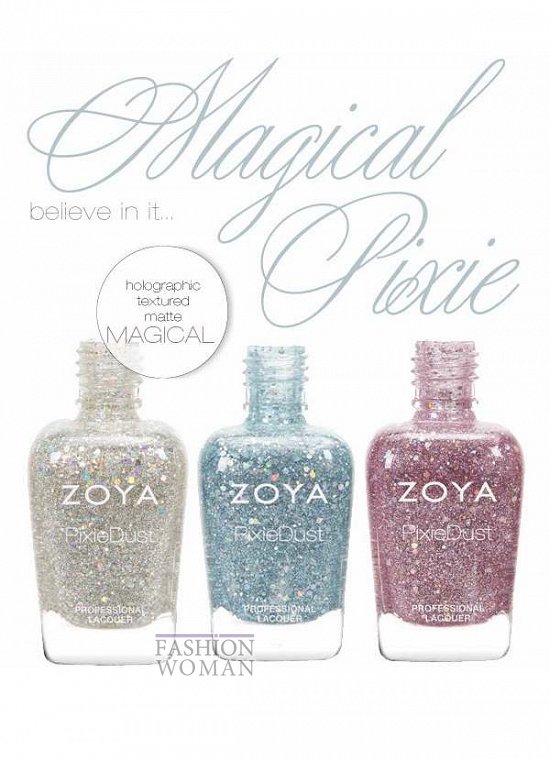 Новая коллекция от американской марки Zoya состоит из трех новых оттенков с текстурой жидкий песок. Международная дата запуска коллекции Zoya Magical Pixie намечена на 1 марта 2014 года.