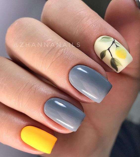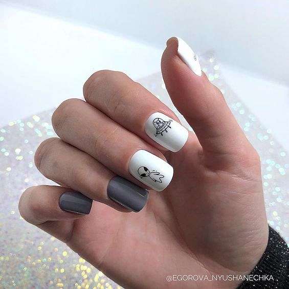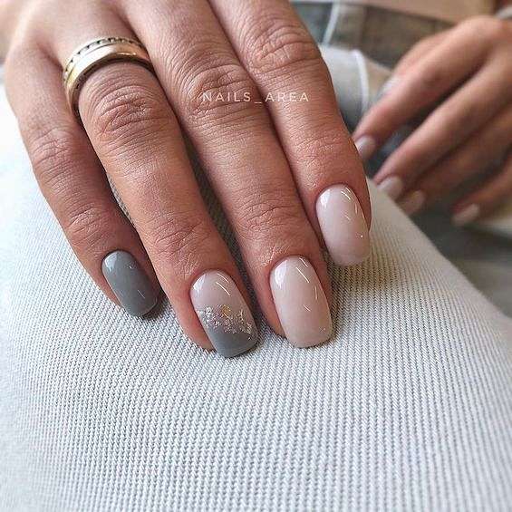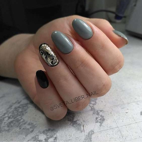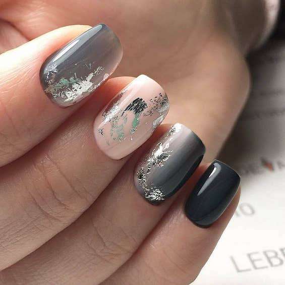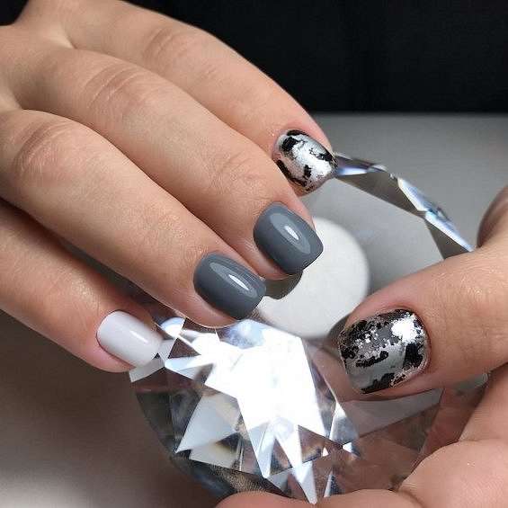 Если длина ногтей не позволяет воссоздать на ней любой понравившийся вам дизайн – не стоит расстраиваться! Ведь остаётся ещё так много «запасных» вариантов. К примеру, на коротких ногтях отлично смотрится маникюр с серым гель-лаком, фольгой, небольшими рисунками, разводами или лаконичной геометрией.