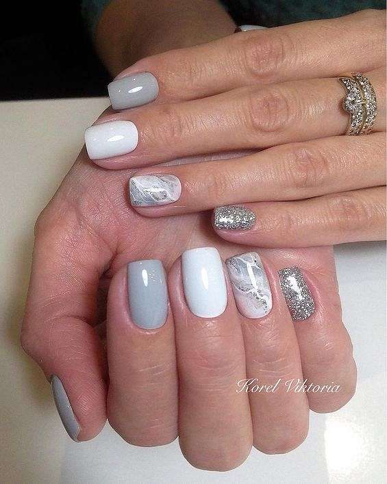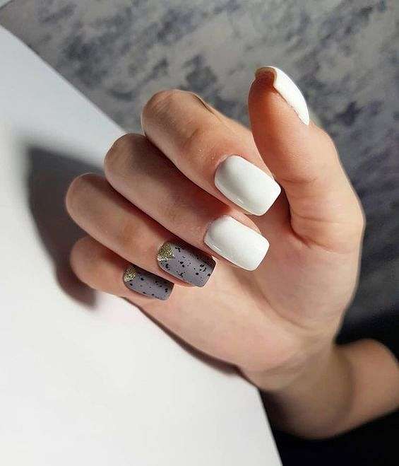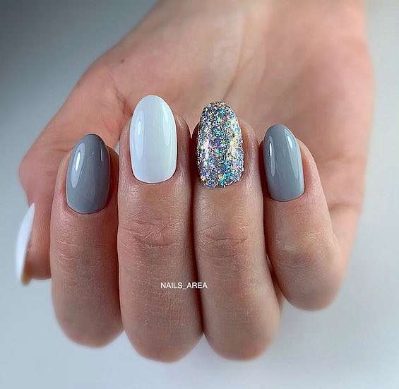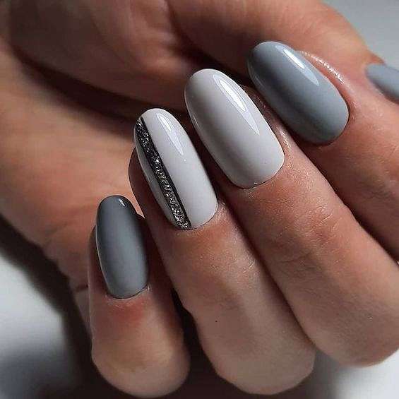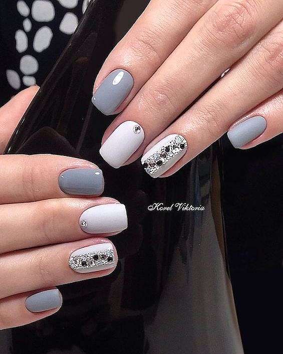 Серый и белый. Белый цвет придаст маникюру свежести и яркости.