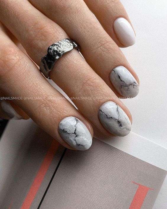 - мраморный маникюр;
