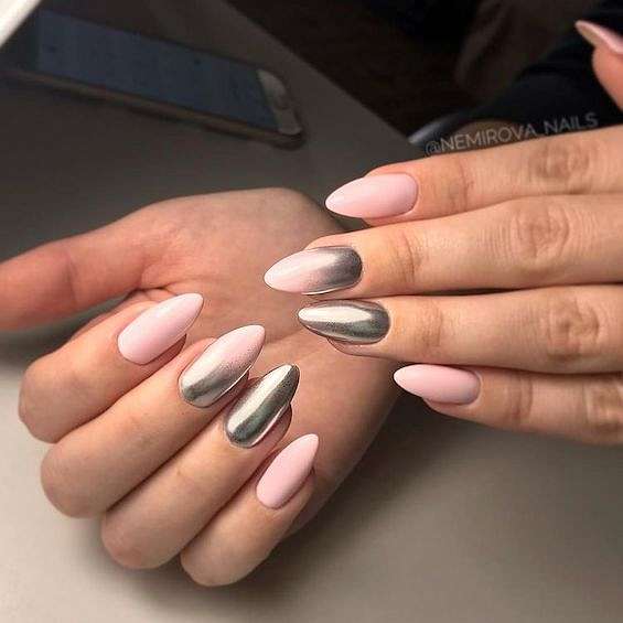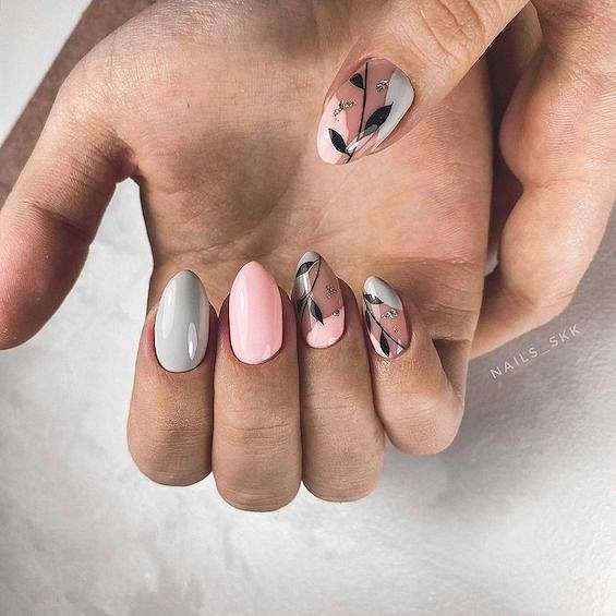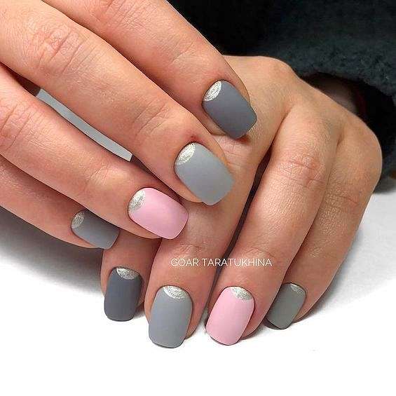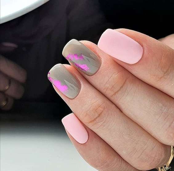 Серо-розовый маникюр