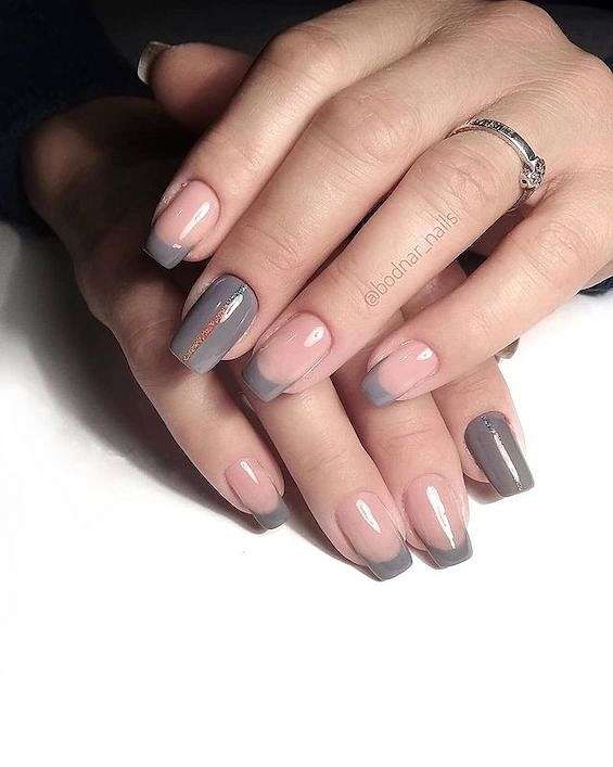 Серый французский маникюр